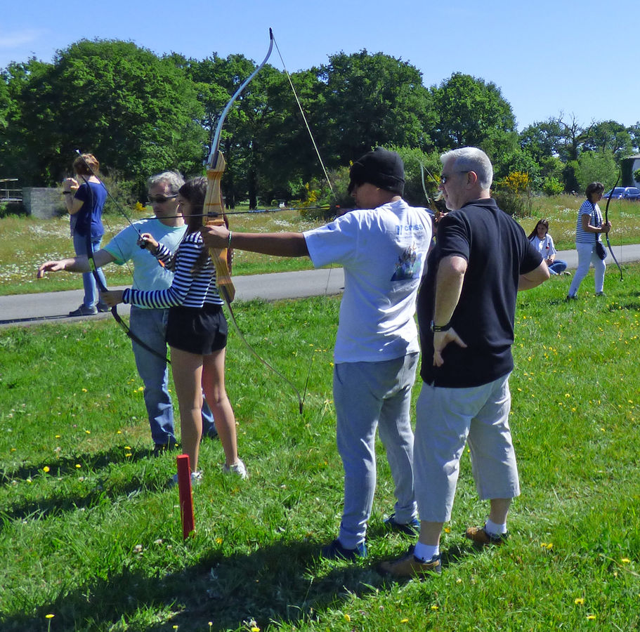 Encadrés par Marc, Thierry et Laurent, les jeunes ont appris les rudiments du tir dans la salle pendant que les autres archers se déployaient en bon ordre, qui au barbecue, qui à la mise en place de bêtes sur le terrain.
