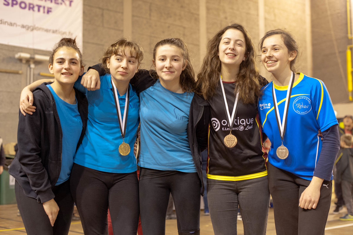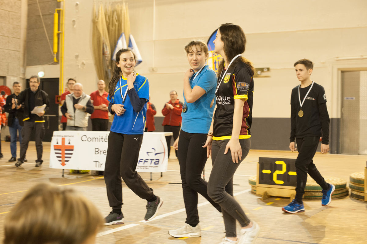 Jeanne GABLIN, Faustine HAREL et Tristan COQUAIRE, Champions de Bretagne 2019 par équipe.